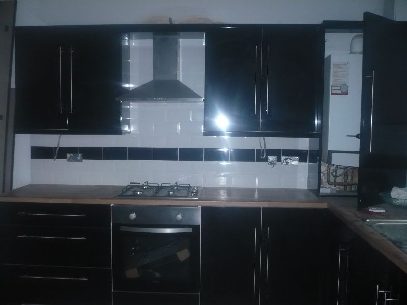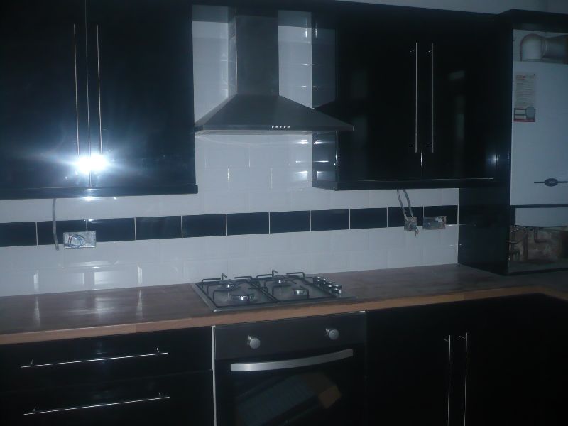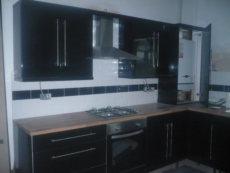 Kitchen fit, first fix for below worktop appliances and above worktop sockets. Second fix black nickel sockets fitted to match border tiles. At same time 17th edition fusebox was fitted to comply with current regs.